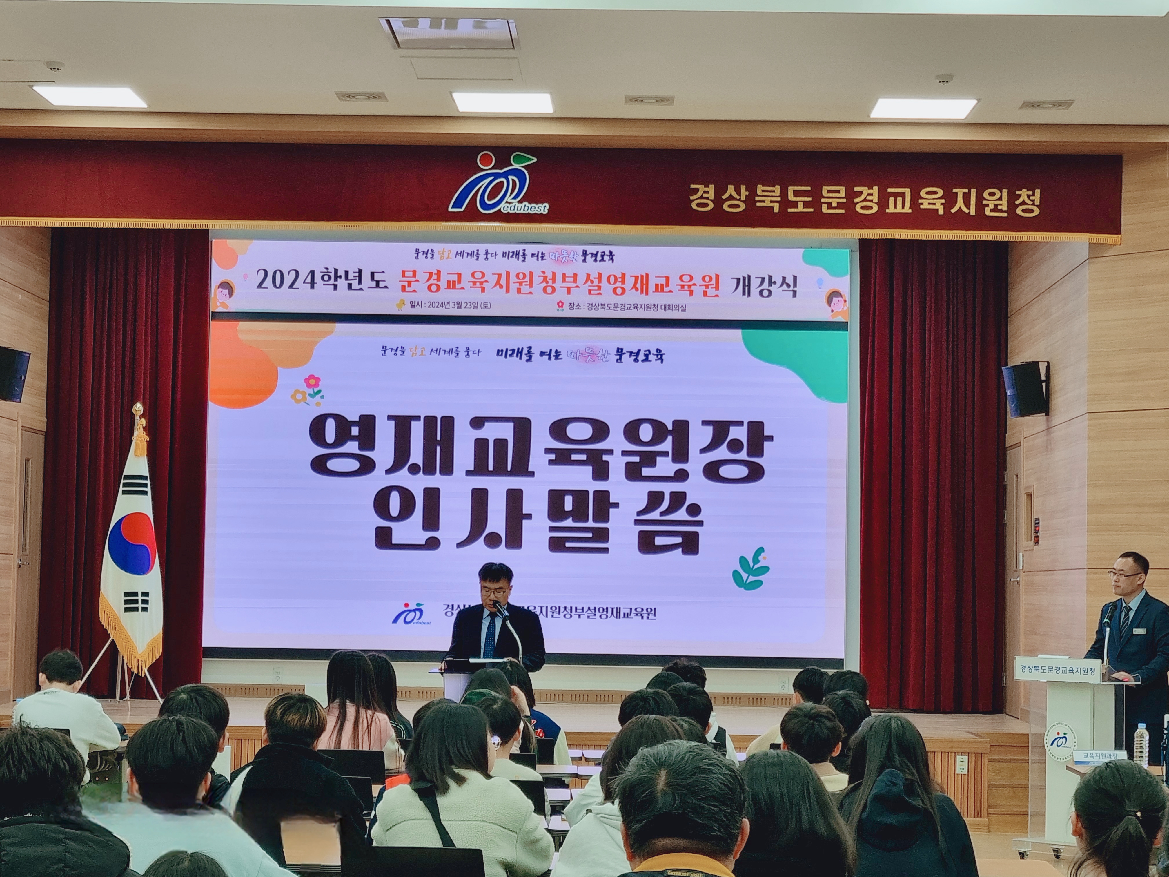 □ 문경교육지원청(교육장 이경옥)은 3월 23일(토) 문경교육지원청 대회의실에서 영재교육 강사 및 참여 학생, 학부모 등 160여명을 대상으로 2024학년도 문경교육지원청부설영재교육원 개강식 및 학부모 연수를 실시했다.