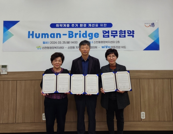 [금요저널] 시흥시 신천동 행정복지센터는 신천동 지역사회보장협의체, 협동조합 위드와 지난 25일 취약계층 주거환경 개선을 위한 업무 협약을 체결했다.