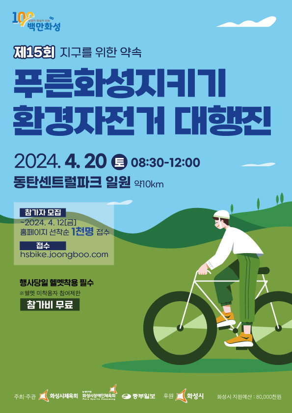 [금요저널] 화성시가 오는 4월 20일 시민의 건강 증진과 환경보존의식 제고를 위한 ‘제15회 푸른화성지키기 환경자전거 대행진’을 개최한다.