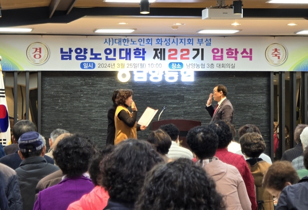 [금요저널] 화성시가 25일 남양농협에서 2024년 남양노인대학 입학식을 열고 어르신들의 배움에 대한 열정을 응원했다.