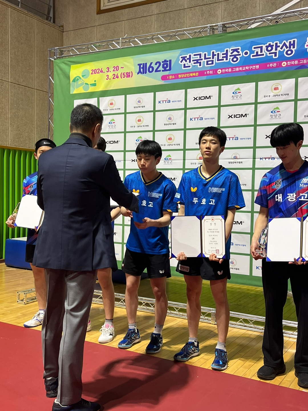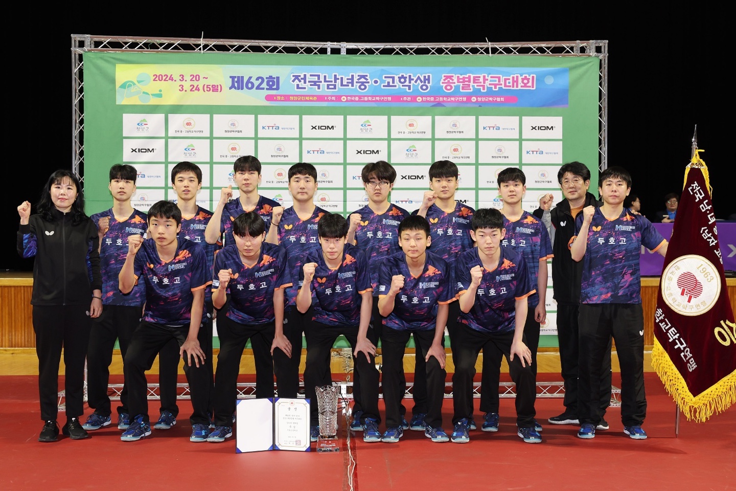 □ 포항 두호고등학교(교장 박용호)는 지난 3월 20일 ~ 3월 24일까지 충청남도 청양군에서 개최된 제62회 전국남녀중고학생종별탁구대회에 출전하여 단체전 우승, 개인단식 우승, 개인복식 우승으로 전관왕을 획득하는 눈부신 성과를 얻었다.