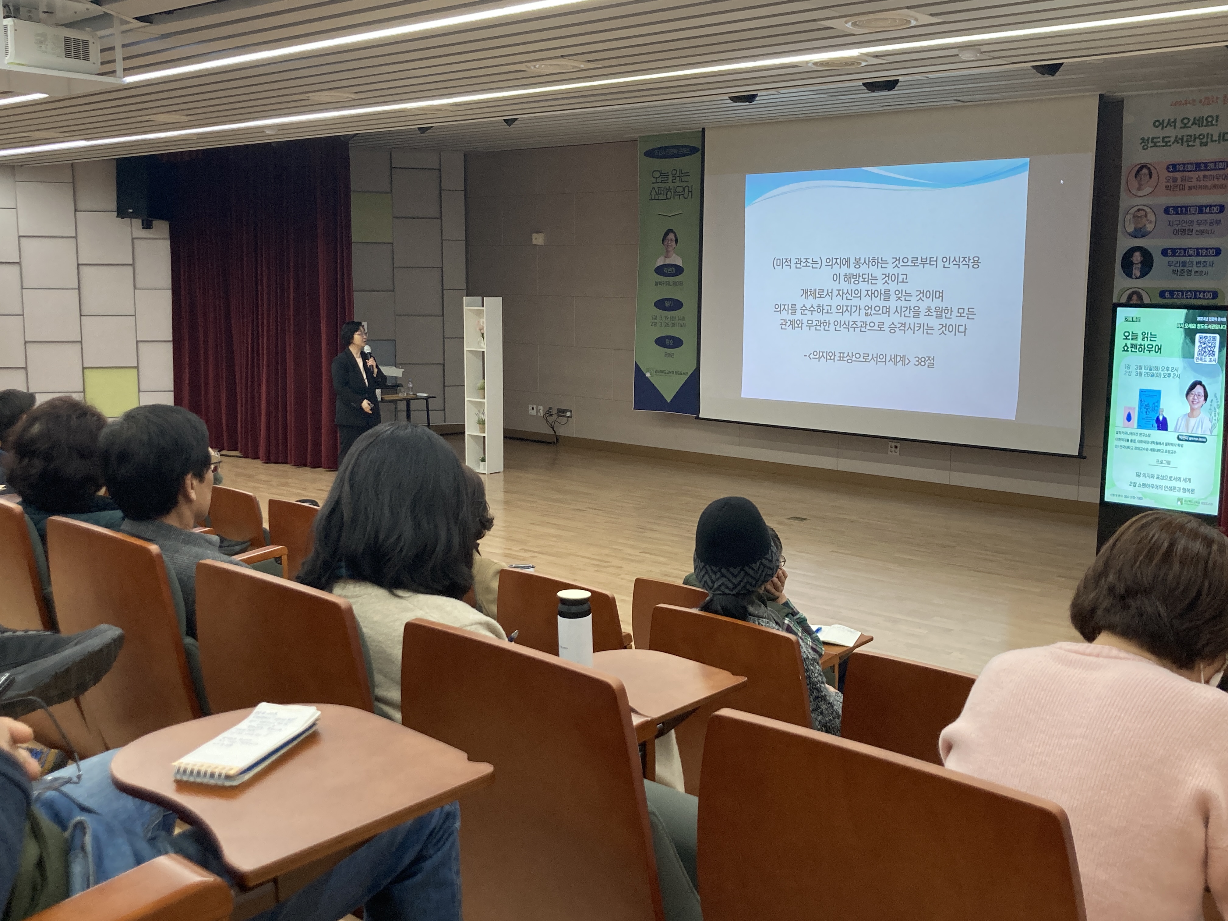 강연에 참석한 지역주민은 “젊은 시절 쇼펜하우어에 관해서 책도 읽고 공부했지만, 혼자서는 잘 이해하지 못했는데 작가님의 열정 가득한 강연을 들으니, 쇼펜하우어의 철학이 머리에 쏙쏙 들어오는 귀한 시간이었다.”라고 소감을 전했다.