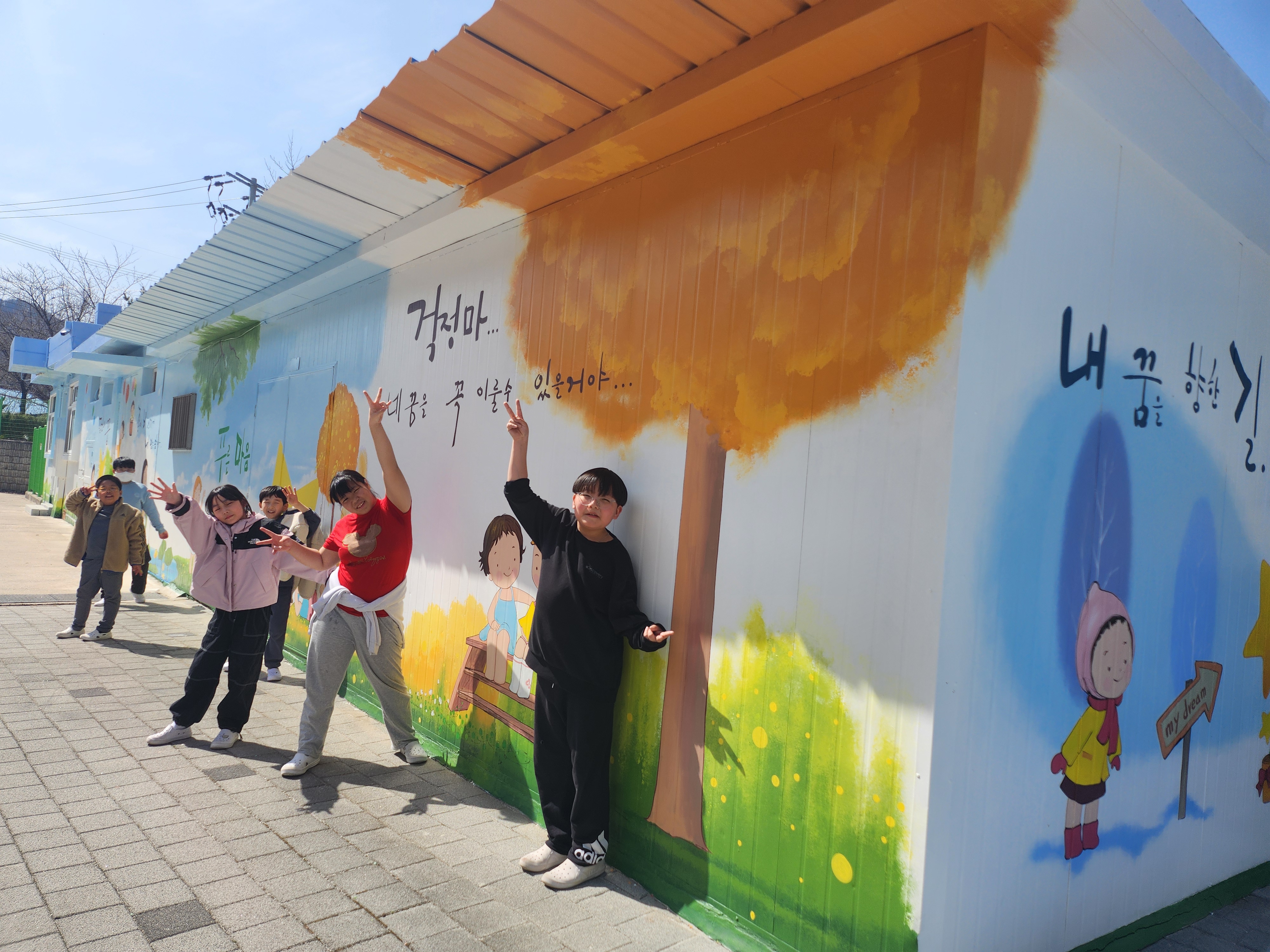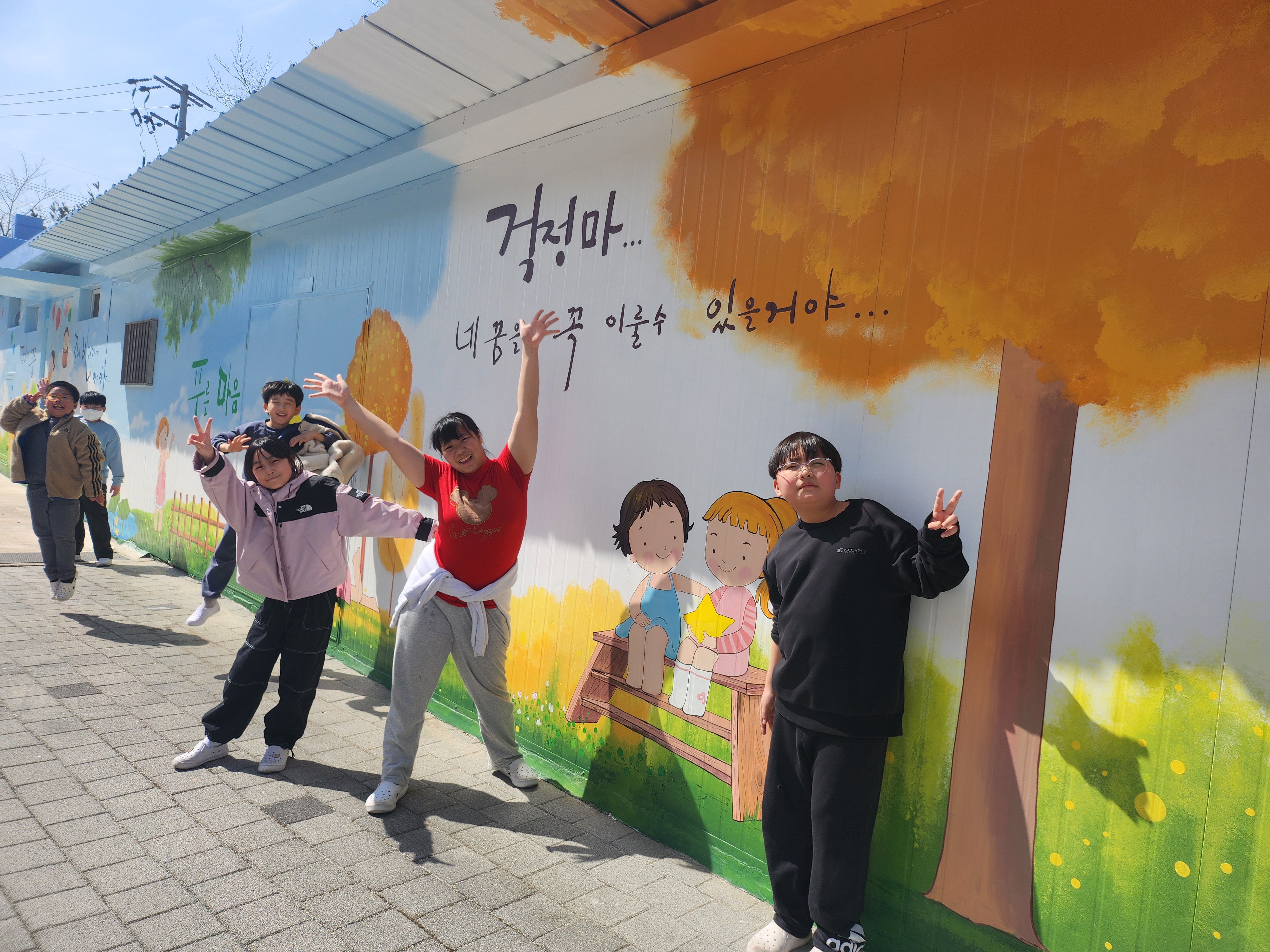 학생들은 “학교가 예쁜 새 옷을 입은 것 같아 뿌뜻하고 나중에 중학교 가서도 학교를 떠올리면 벽화가 생각날 것 같다.”고 벽화 감상의 소감을 말했다.