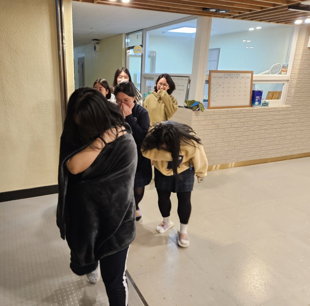 □ 야간에 호실에서 발생한 화재를 가상하여 화재 경보벨을 눌러 화재 발생 사실을 기숙사생들에게 알리고 소화기를 사용한 초동 진화, 대피, 119 소방차로 화재 진압, 심폐소생술 등의 과정을 직접 체험해 보는 식으로 진행되었다.