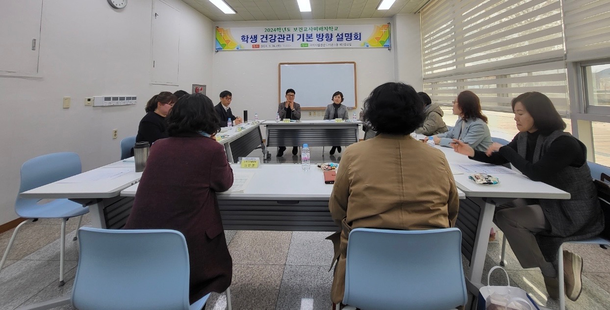 ❑ 경상북도구미교육지원청(교육장 남성관)은 지난 26일 구미시립선산도서관 1층 강의실에서 관내 보건교사 미배치학교를 대상으로 2024학년도 학생 건강관리 기본방향 설명회를 개최하였다.