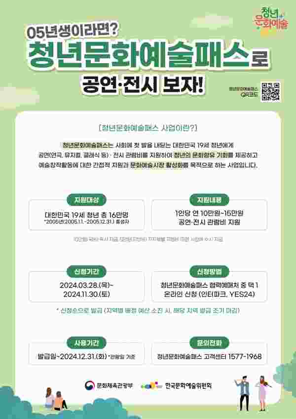 청년문화예술패스의 신청 및 발급은 3월 28일 오전 10시부터 예산이 소진되기 전까지 선착순으로 진행된다.