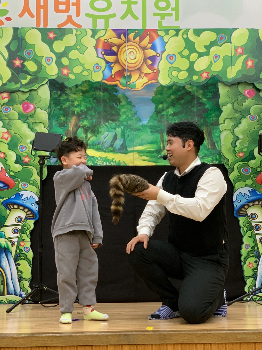 □ 모여라꿈동산 극단의 비버 선생님이 재미있는 매직쇼로 교육 인형극 시작 전 분위기를 환기시키며 관람의 집중도를 높였다. 이어서 익살스러운 복화술로 아동인권 및 가정폭력예방에 대한 퀴즈를 내면서 유아들의 반응을 끌어냈다.