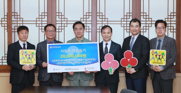 4사를 대표해 ㈜테크로스환경서비스 김정철 대표이사는 “작은 도움이지만 어려운 이웃들을 위해 잘 쓰여지길 바란다”며 “앞으로도 지속적인 사회공헌 활동을 펼치며 따듯한 세상을 만들기 위해 노력하겠다”고 말했다.