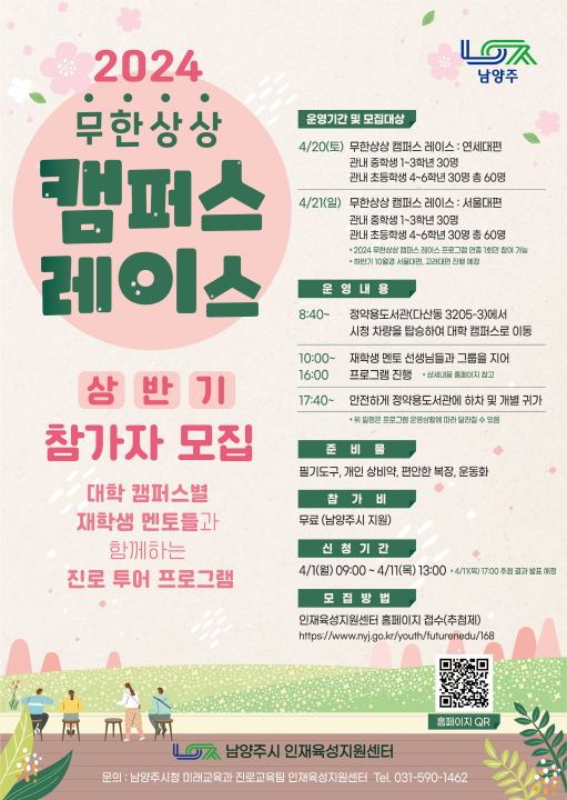 [금요저널] 남양주시는 오는 4월 1일부터 4월 11일까지 남양주시 관내 초중등학생을 대상으로 ‘무한상상 캠퍼스 레이스’ 참가자를 모집한다고 밝혔다.
