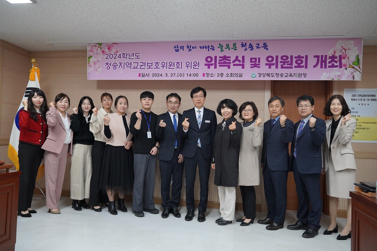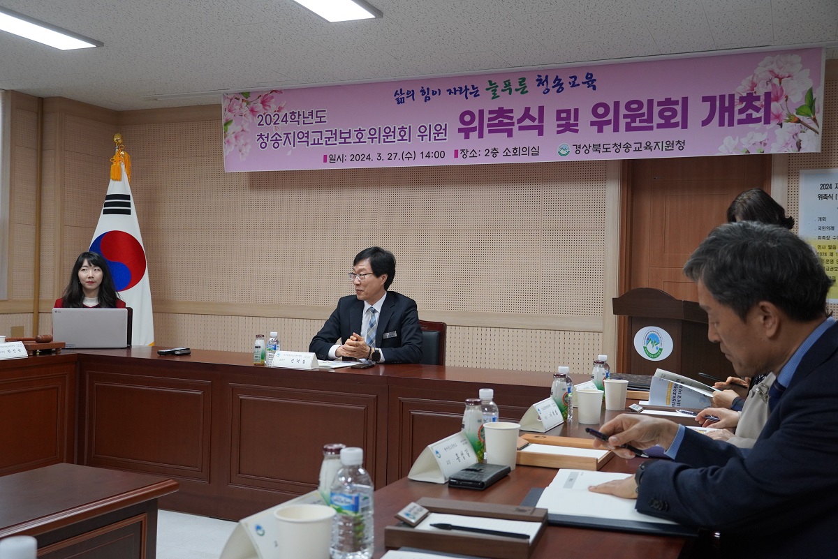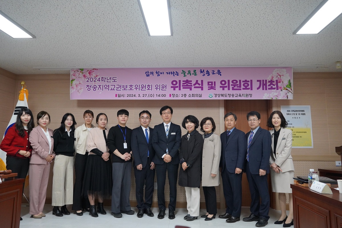 □ 경상북도청송교육지원청(교육장 신덕섭)은 27일(수) 청송교육지원청 2층 소회의실에서 지역교권보호위원회 위원 및 업무담당자 14명을 대상으로 2024학년도 위원 위촉식과 1차 위원회를 개최했다.