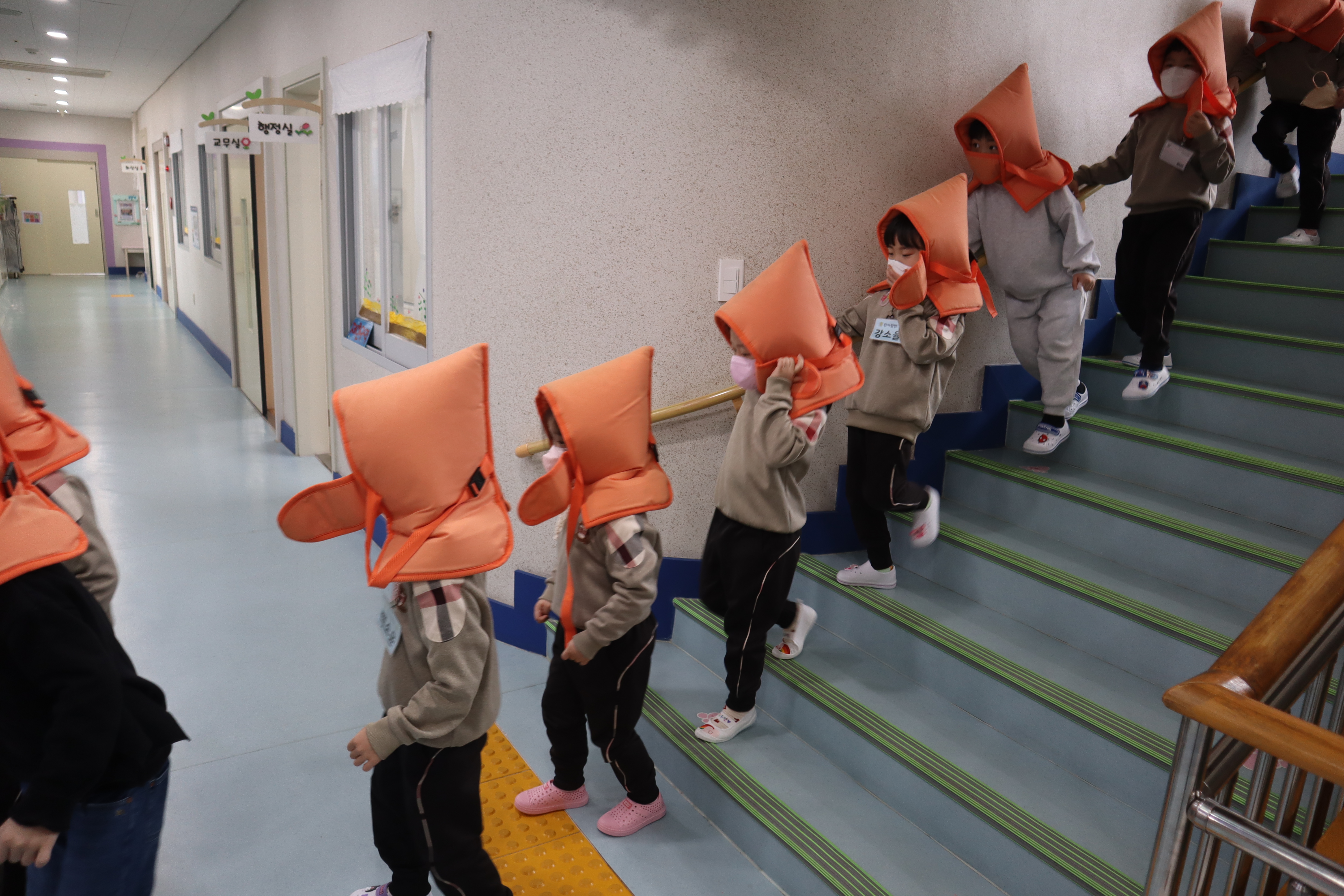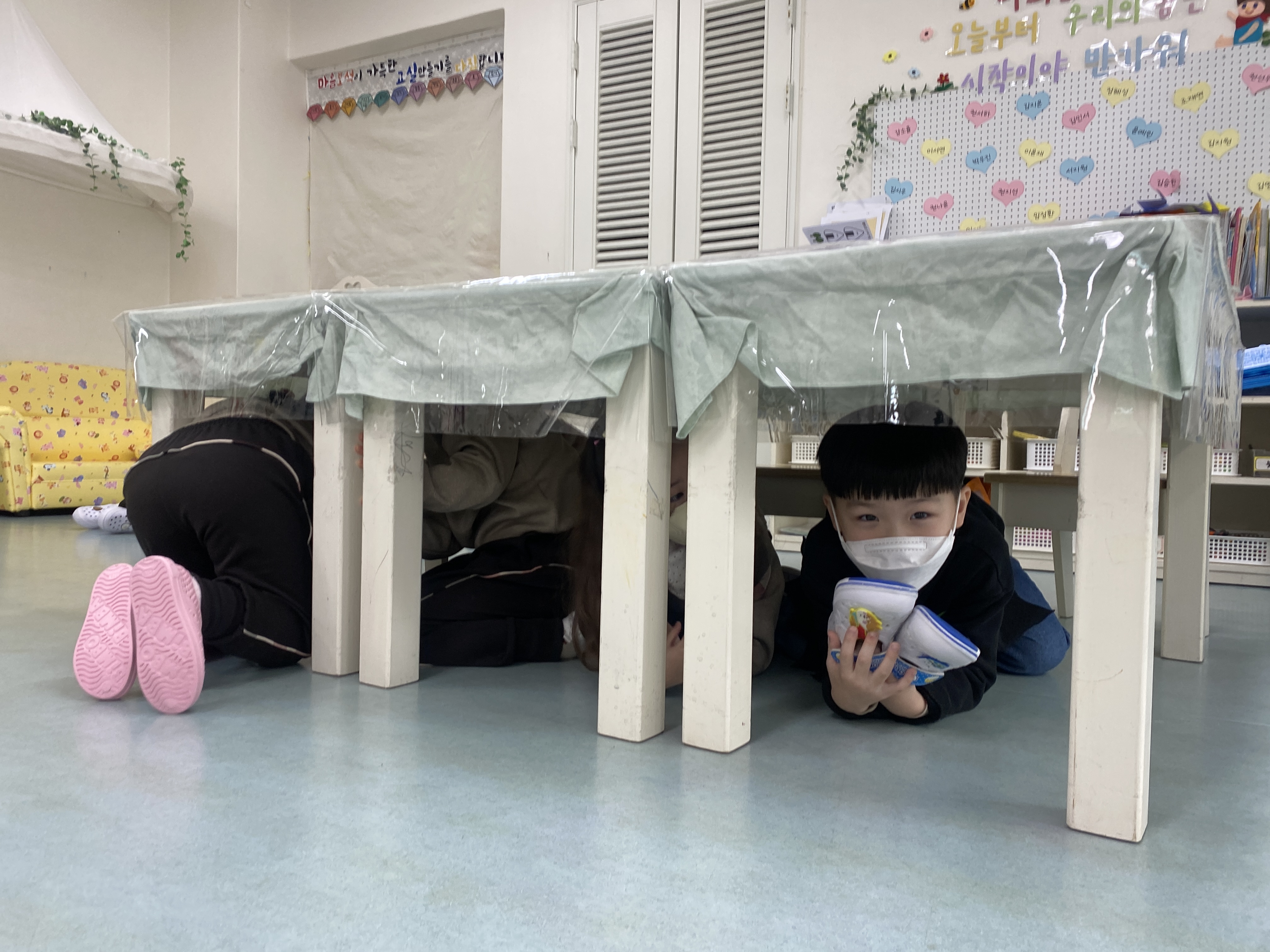 □ 지진대피훈련에 참여한 3세 유아는 “사이렌 소리를 듣고 책상과 계단 밑에 숨었어요.”라고 말했고, 4세 유아는 “지진대피훈련을 하니 진짜 지진이 일어나도 잘 대피할 수 있을 것 같아요.”라고 소감을 말했다.