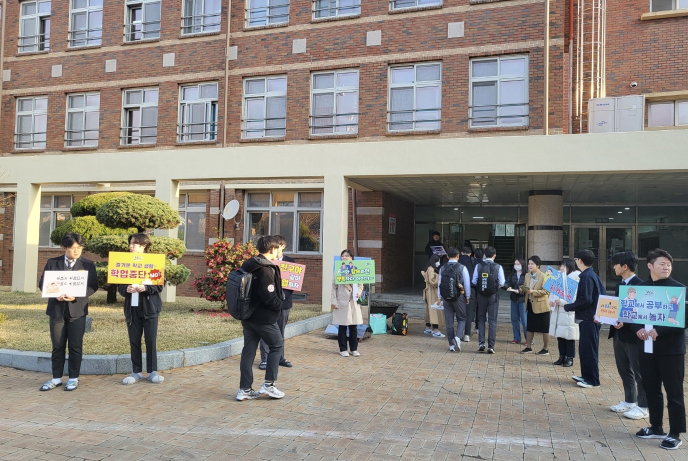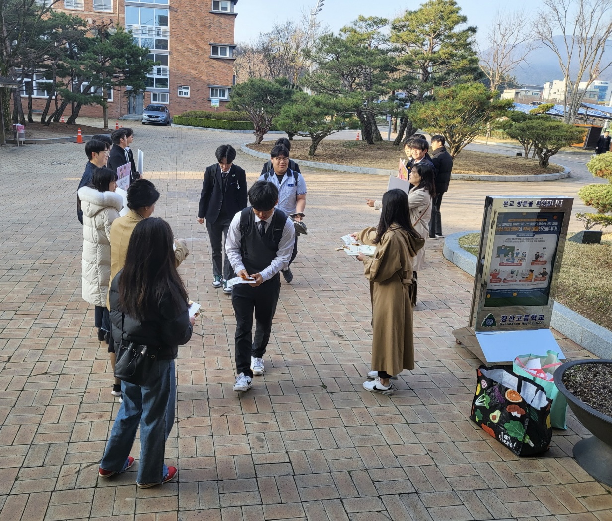 □ 경산고등학교(교장 정석주)는 2024년 3월 27일(수) 아침 등굣길에 학생자치회 임원 및 교직원이 함께하는 ‘학교폭력 예방 및 생명존중 캠페인’을 개최하였다.