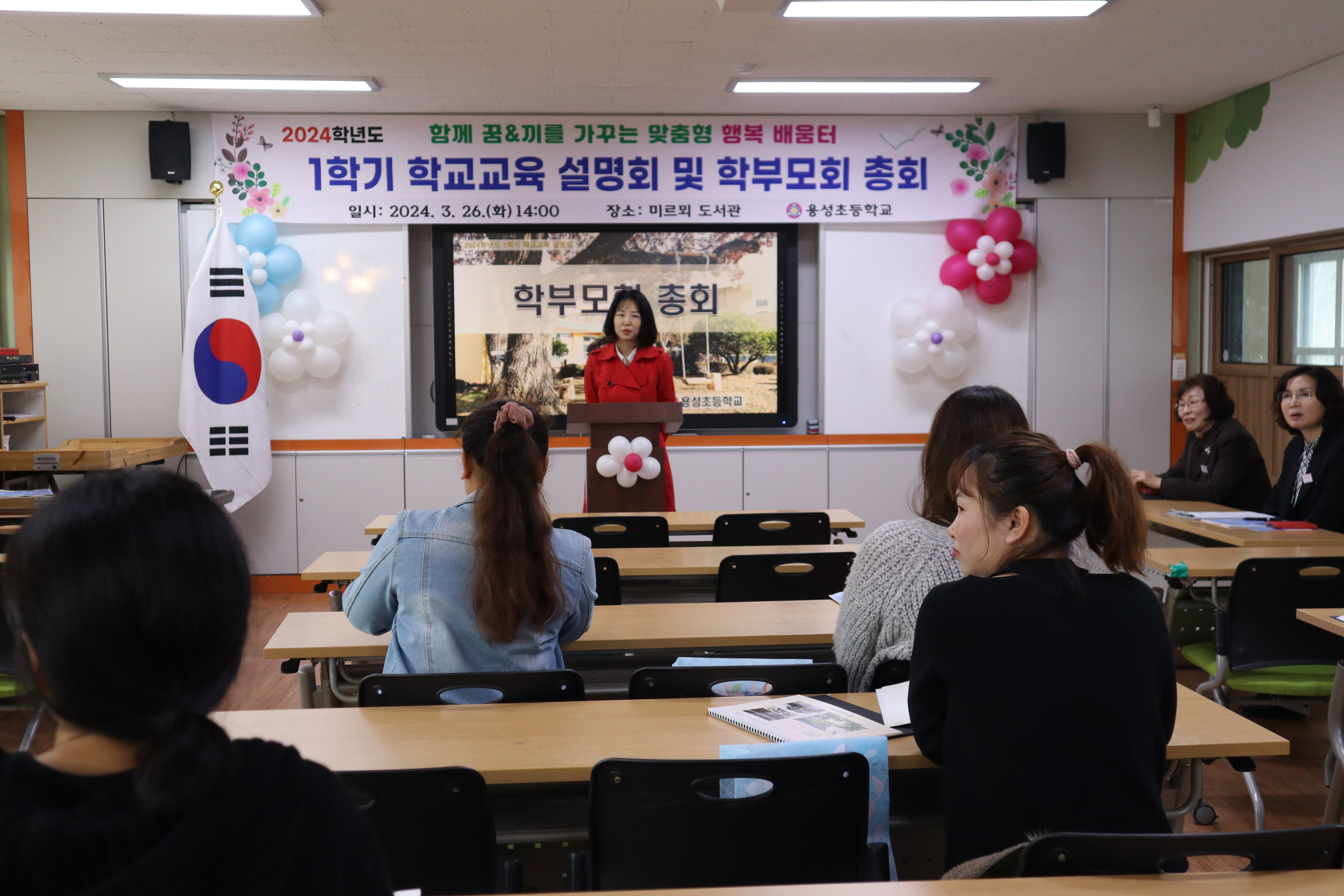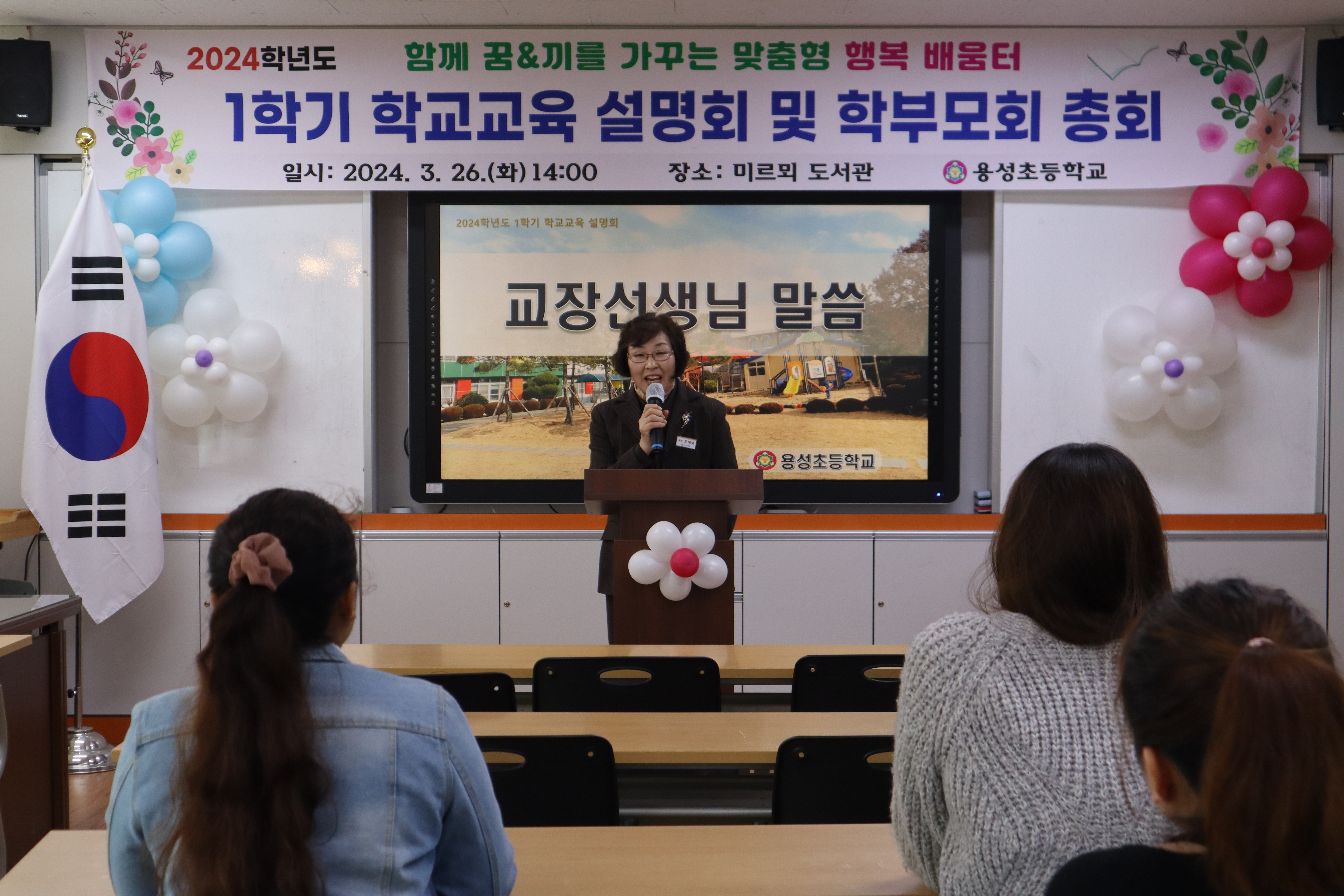 □ 3월 26일 오후 2시, 용성초등학교 학교교육설명회를 개최했다. 이번 설명회는 학부모들에게 본교의 교육과정, 교육정책, 학교의 현황 및 계획 등에 대한 정보를 공유하기 위해 마련되었다. 설명회는 학교의 도서관에서 열렸으며, 교직원과 학부모들이 참석했다.