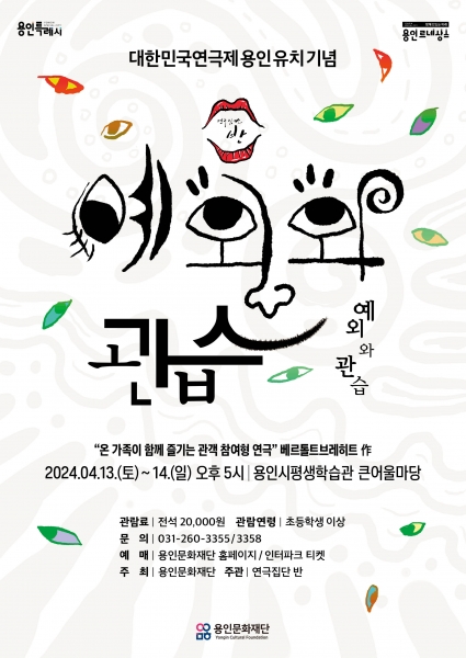 [금요저널] 용인문화재단은 오는 4월 13일 14일 양일간 용인시평생학습관 큰어울마당에서 ‘대한민국연극제-용인’ 유치 기념 관객 참여형 연극 ‘예외와 관습’을 선보인다.