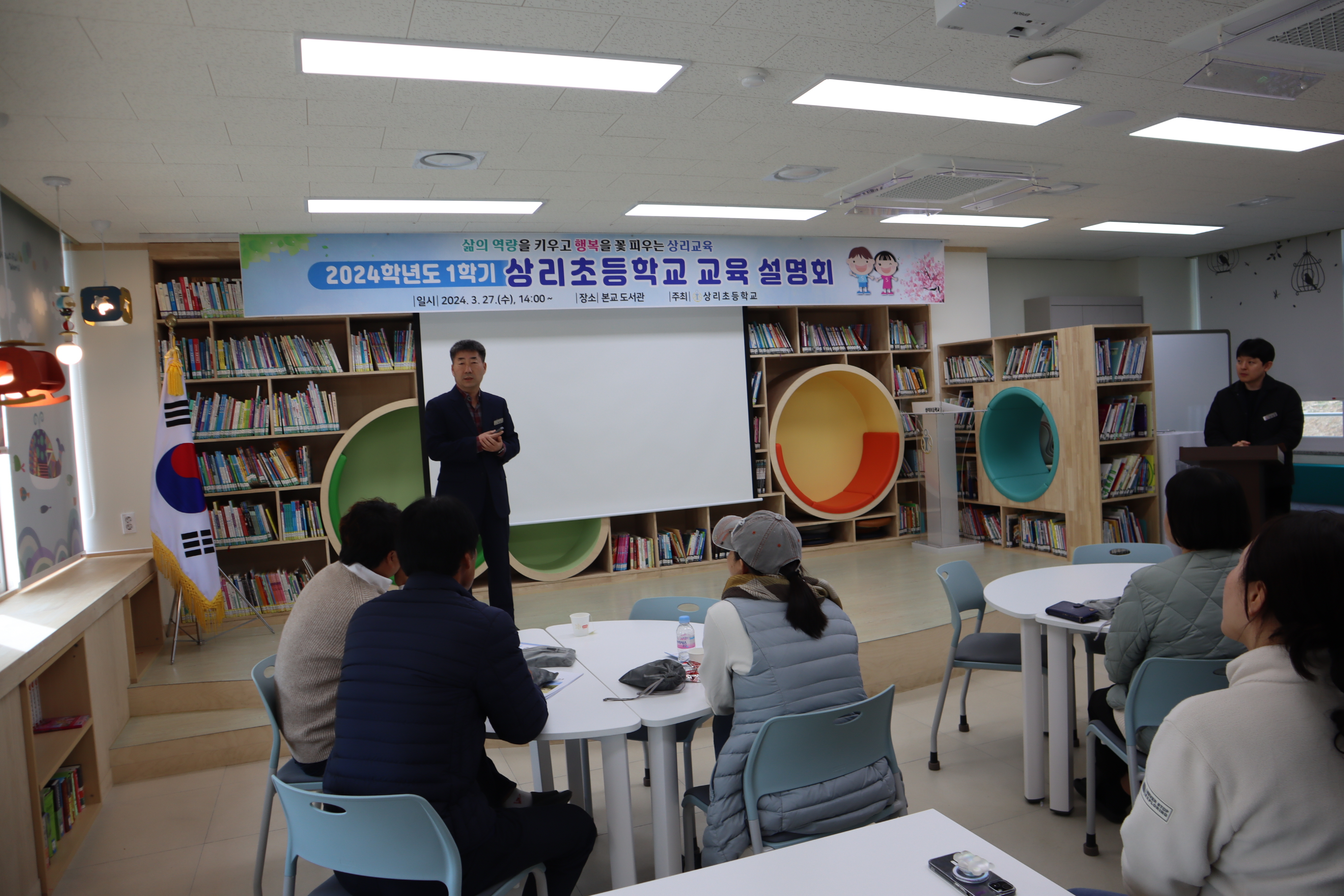상리초등학교(교장 이상진)에서는 2024년 3월 27일(수), 본교 도서관에서 2024학년도 1학기 학교 교육 설명회를 실시했다.