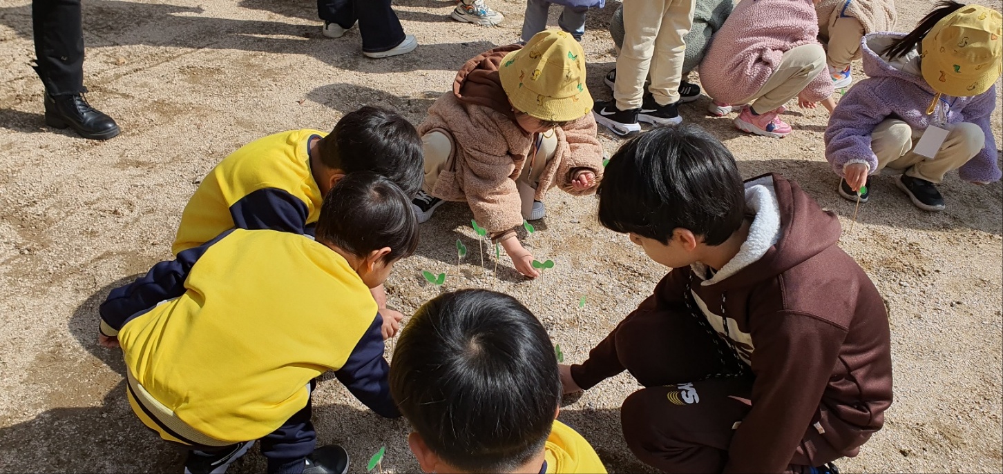 가야산선생님과의 약속, ‘자기 몸은 자기가 보호한다.’ ‘발에 힘을 주어 걷는다.’등을 말하고, ‘새싹’이 무엇인지? ‘봄’에 나무가 어떻게 변하는지 이야기 나눈 후, ‘봄 찾기’활동을 했다.