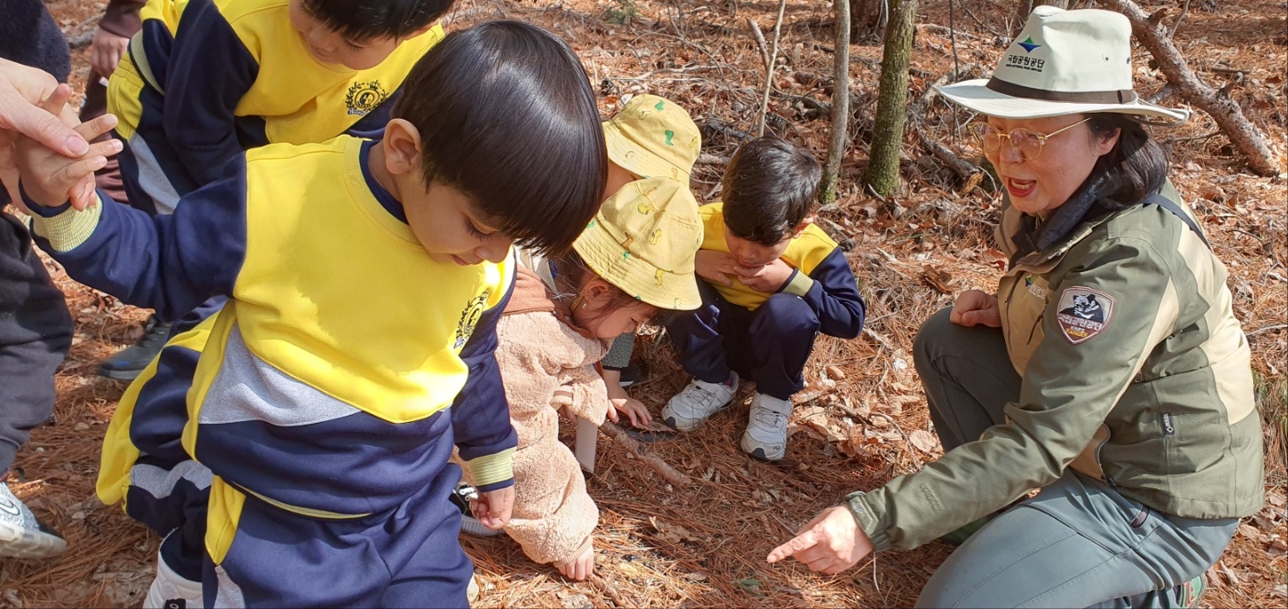 생강나무 꽃의 향기도 맡고, 꽃을 따서 따뜻한 ‘생강꽃차’도 마셨으며, 모형 새싹을 땅에 심고, 새싹을 보호하는 게임도 했다. 등산하며 주워온 솔방울을 다시 산에게 돌려주며 ‘다시 놀러올게’ 약속도 했다.