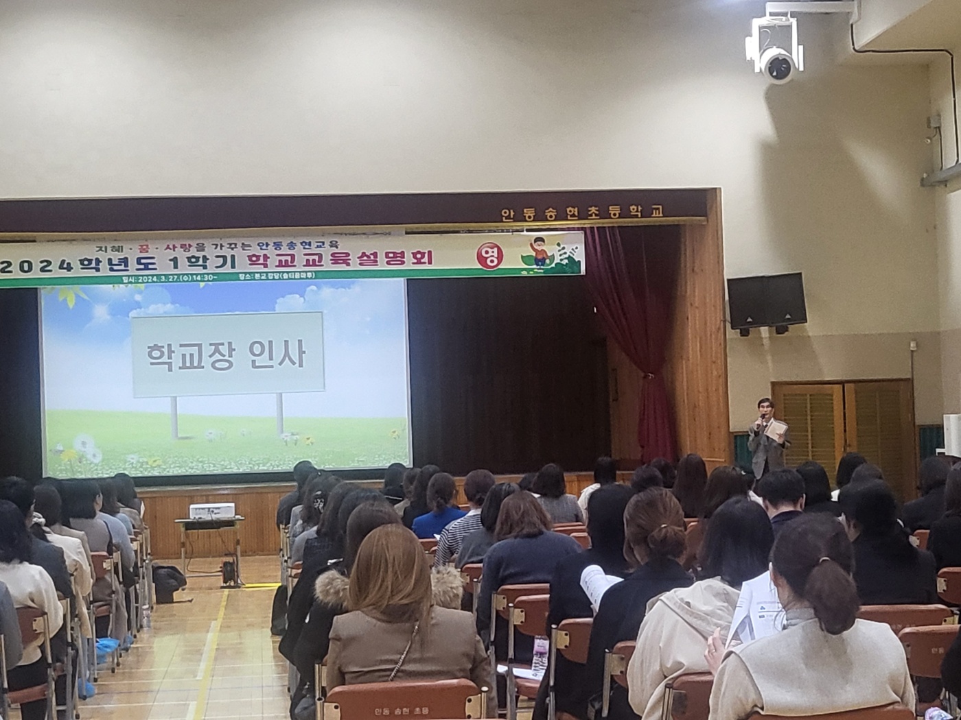 - 안동송현초등학교(학교장 이형구)는 3. 27.(수)에 학교교육설명회를 개최하였다. 교직원 소개를 시작으로 교육과정 안내, 특색교육, 교외체험학습, 학교폭력예방 등 학부모 연수 후에는 학급 담임과의 만남의 시간을 가지게 되었다. 또한 3월 25일 ~ 3월 29일까지는 방문 및 전화로 학부모 상담 주간을 운영하여 자녀의 학교생활에 대한 적응력 및 교우관계 등에 대한 상담이 이루어지고 있다.