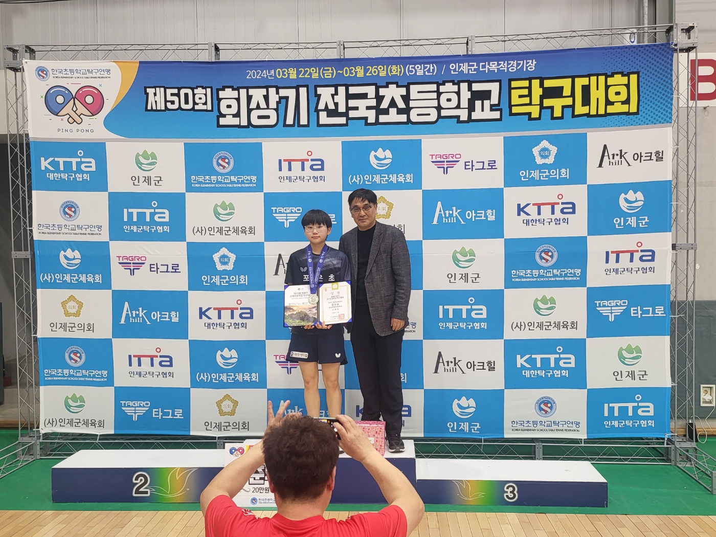 포은초등학교(교장 박광일) 학교운동부인 탁구부 학생 선수들은 3월 22일(금) ~ 3월 26일(화) 강원도 인제군에서 열린 제50회 회장기 전국초등학교 탁구대회에 출전하여 우수한 성적을 거두며 2024년 첫 전국대회에서 쾌조의 출발 테이프를 끊었다.