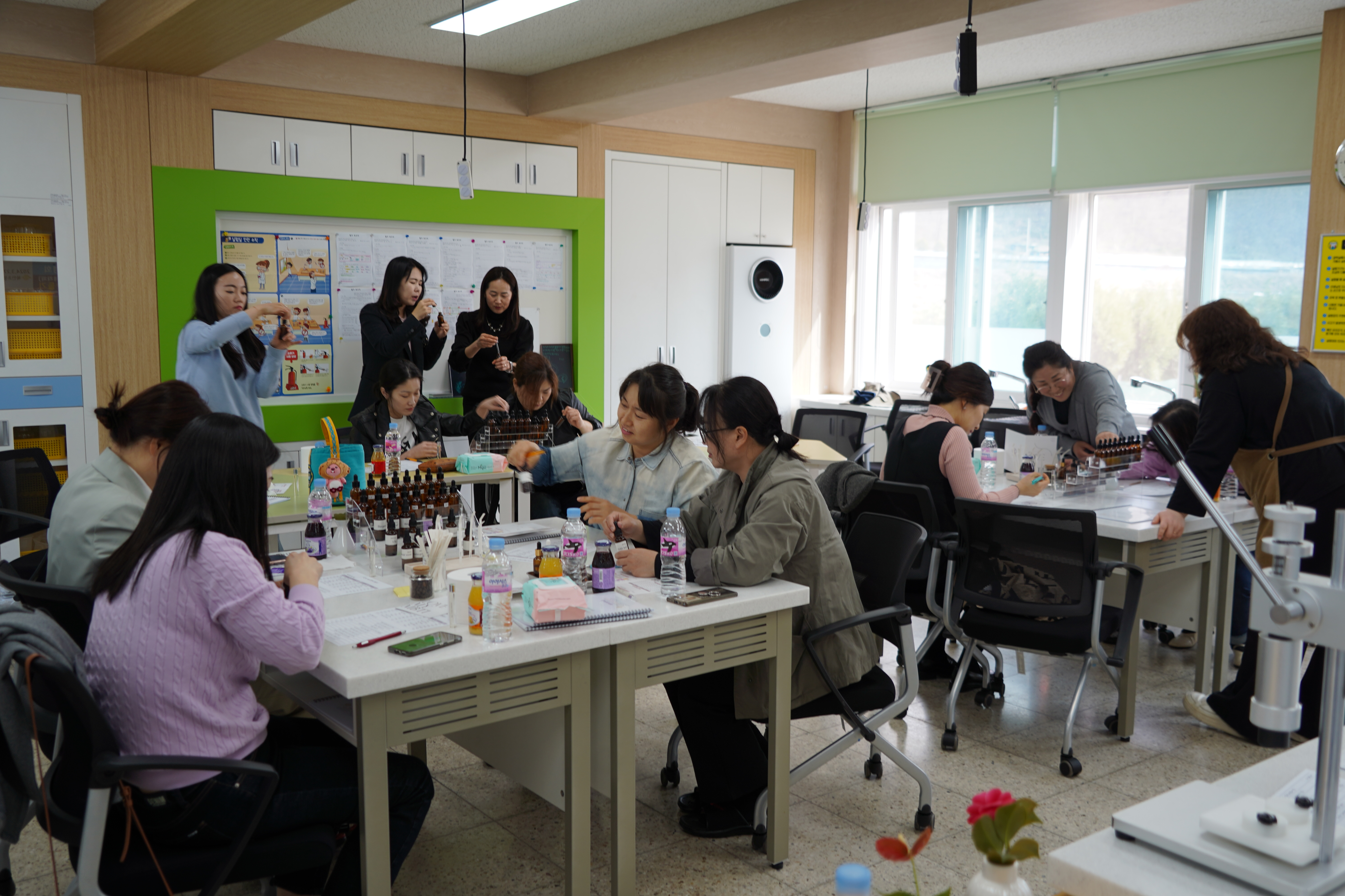 □ 학부모교육으로 아로마테라피(향기치료) 전문 강사를 초청하여 ‘MBTI 향수 만들기’ 프로그램을 진행하였다. 먼저, 부모와 자녀가 집중력 향상 및 기분 전환을 위해 함께 사용할 수 있는 천연 허브오일(에센셜오일)로 저자극 향수를 만들었다. 다음으로, 자신의 성격유형을 따라 어울리는 향을 찾고 여러 향을 추가하여 나만의 향수도 만들었다. 프로그램을 통해 내가 선호하는 향에 대해 스스로 인식하고 주변 학부모와도 향기로 소통할 수 있었다.