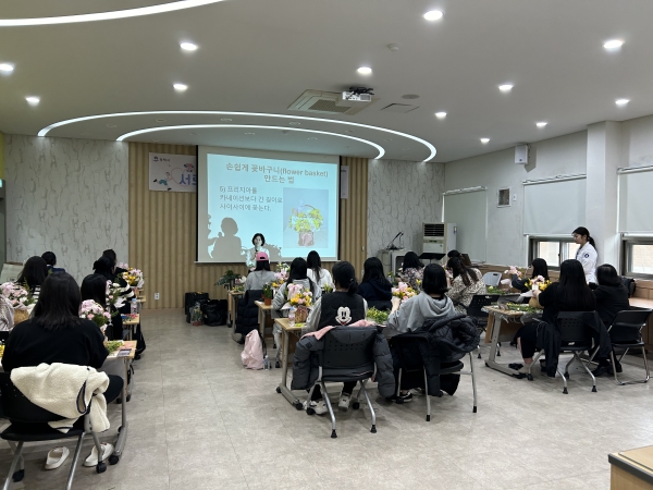 이번 태교 교실은 ‘임산부가 행복한 힐링 태교 꽃꽂이’라는 주제로 △엄마와 태아의 애착 형성을 위한 태교의 중요성 △오감 활용 꽃꽂이 방법 △꽃을 오래 보관하는 방법 등을 꽃꽂이 전문 강사가 진행했다.