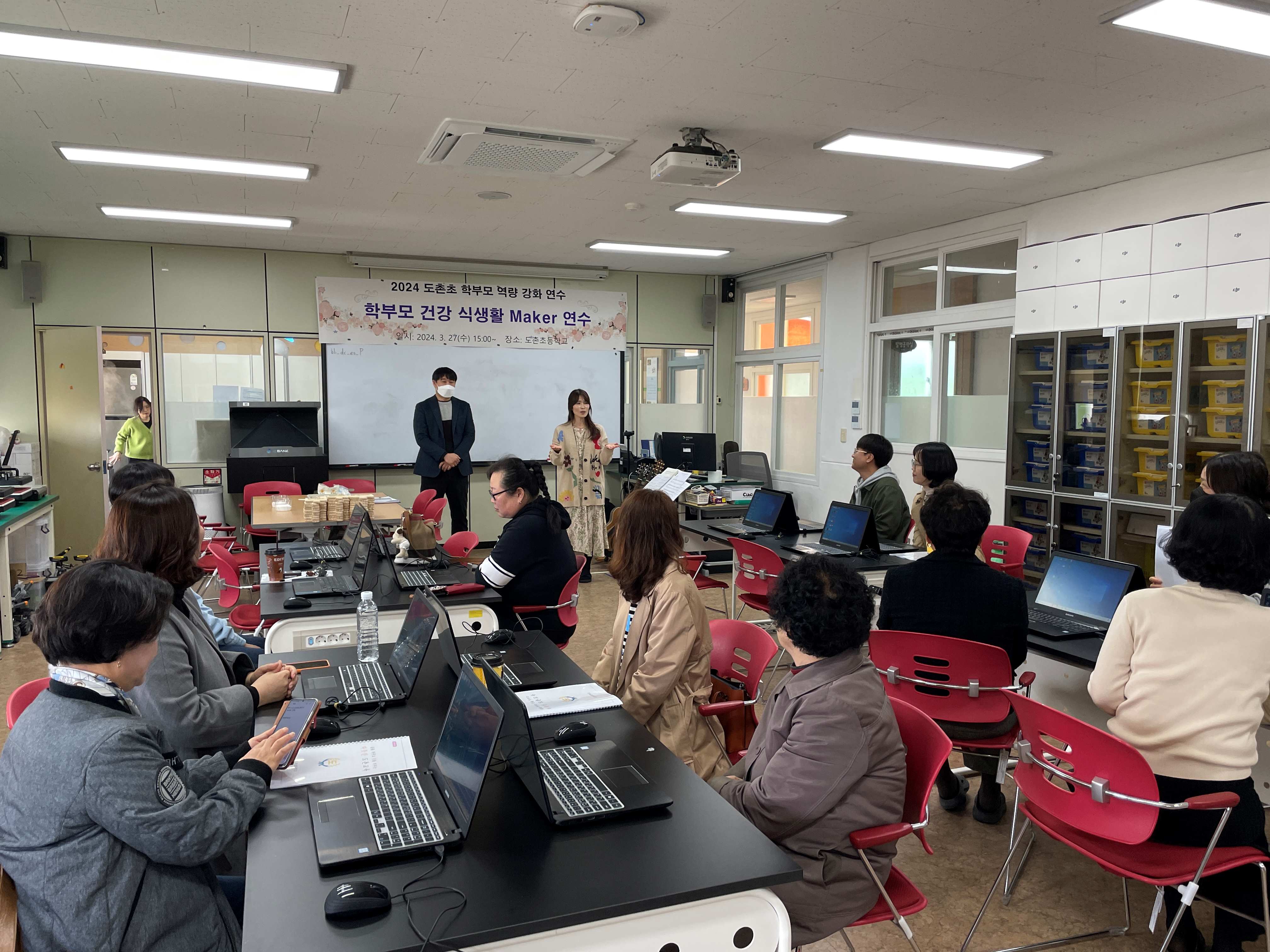 □ 도촌초등학교(교장 김춘희)는 3월 27일(수), 교육과정 설명회에 참석한 학부모님들을 대상으로‘건강한 식생활을 위한 메이커 연수’를 개최했다.