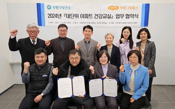 [금요저널] 부평구 보건소와 e편한세상 부평그랑힐스 아파트가 28일 ‘대단위 아파트 건강교실’ 운영에 대한 업무 협약을 체결했다.