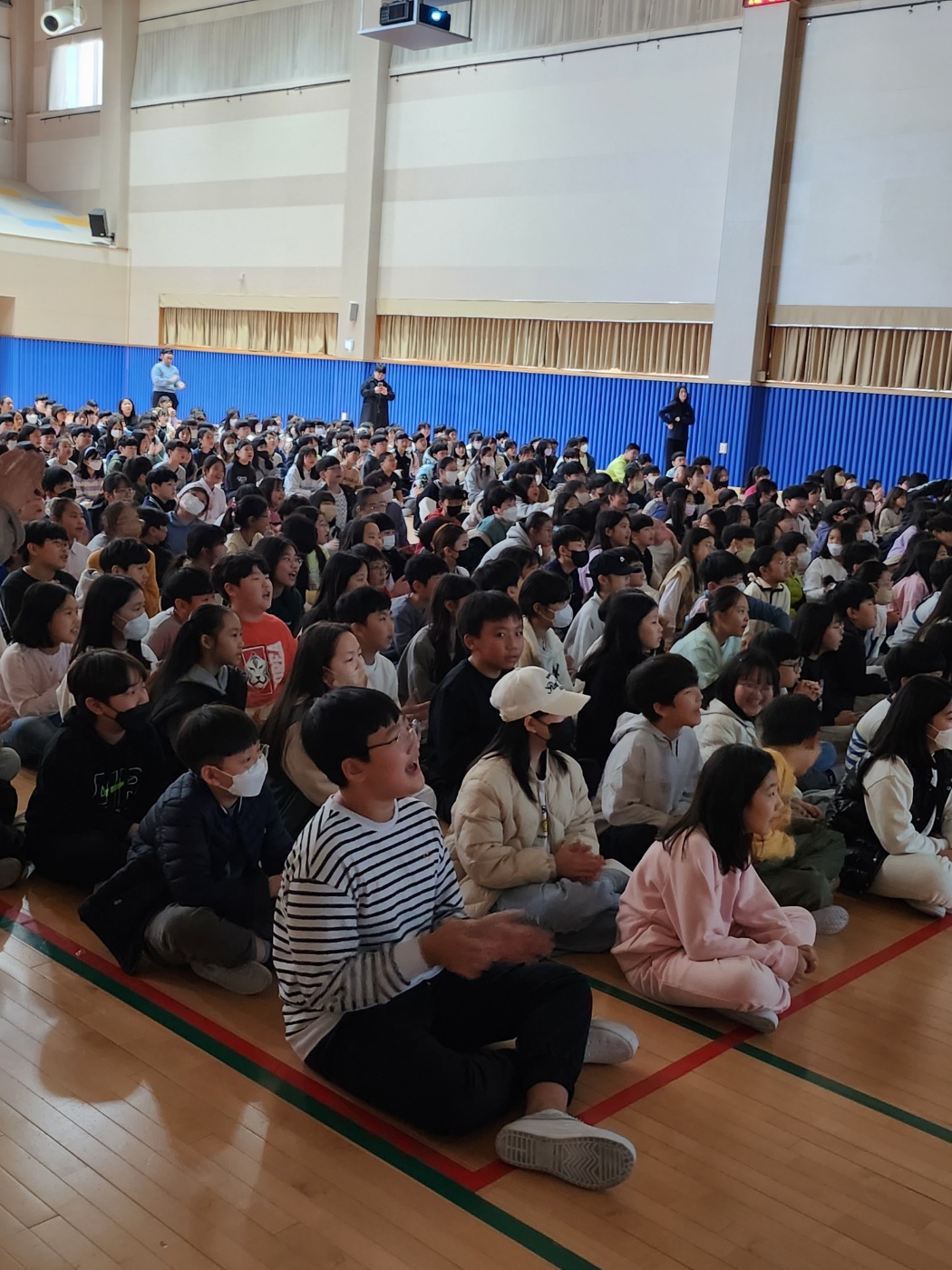 □ 1~2학년, 3~4학년, 5~6학년의 3회 학생 공연이 있었으며, 공연 가운데 장애인식개선 교육을 실시하였다. 지체장애, 청각장애, 시각장애 및 장애인에 대한 에티켓에 대하여 학생들의 눈높이에 맞게 설명하였다. 단원 중 1명이 구족화가로서 자신의 삶과 장애를 극복하는 과정을 소개하여 학생들에게 큰 울림을 주었다. 오후 학부모교육 설명회 때에도 1차례 공연을 하여 학부모님들에게 감동을 선사하였다.
