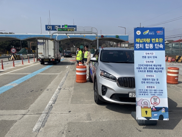 [금요저널] 여주시는 지난 27일 여주IC출구, 차량밀집장소 등에서 경기도청, 한국도로공사 강원본부와 함께 자동차세, 과태료, 통행료 등의 체납차량 일제 단속을 실시했다.