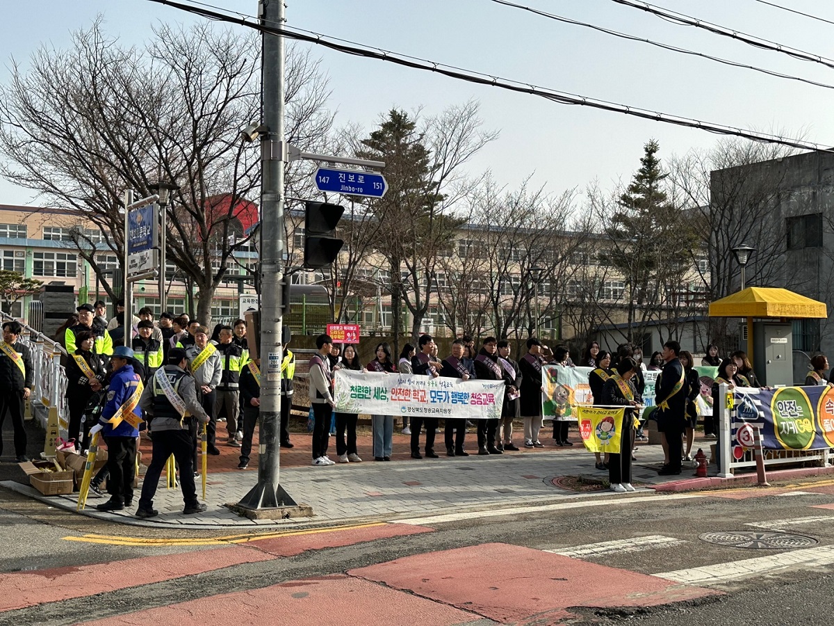 □ 진보초등학교(교장 강휘구)는 3월 29일(금) 등교 시간(08:00~08:40)을 활용하여 학교 정문에서 ‘스쿨존 교통안전 캠페인’을 실시하였다.