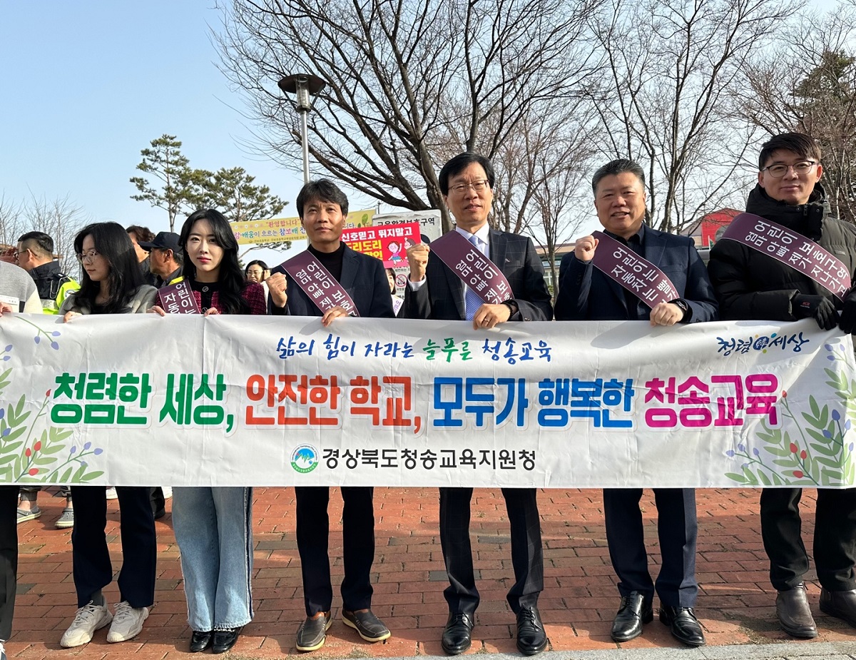 □ 특히 청송교육지원청 신덕섭 교육장과 윤경희 청송군수가 학생들의 교통안전을 위해 캠페인에 참석하였다.
