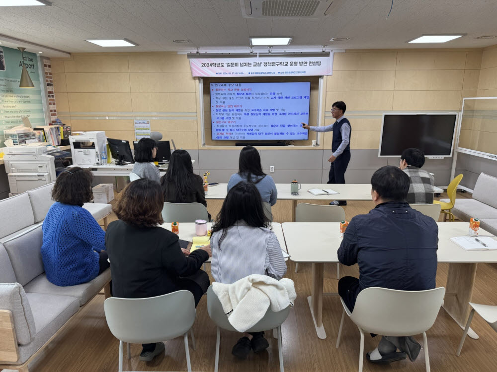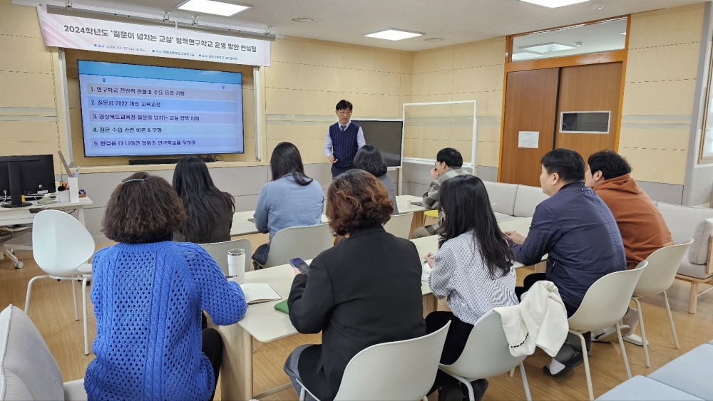 □ 봉화초등학교(교장 강성호)에서는 3월 27일(수)에 전 교원을 대상으로 『질문이 넘치는 교실』을 주제로 한 2024 경상북도교육청 지정 정책 연구학교 컨설팅을 진행하였다.