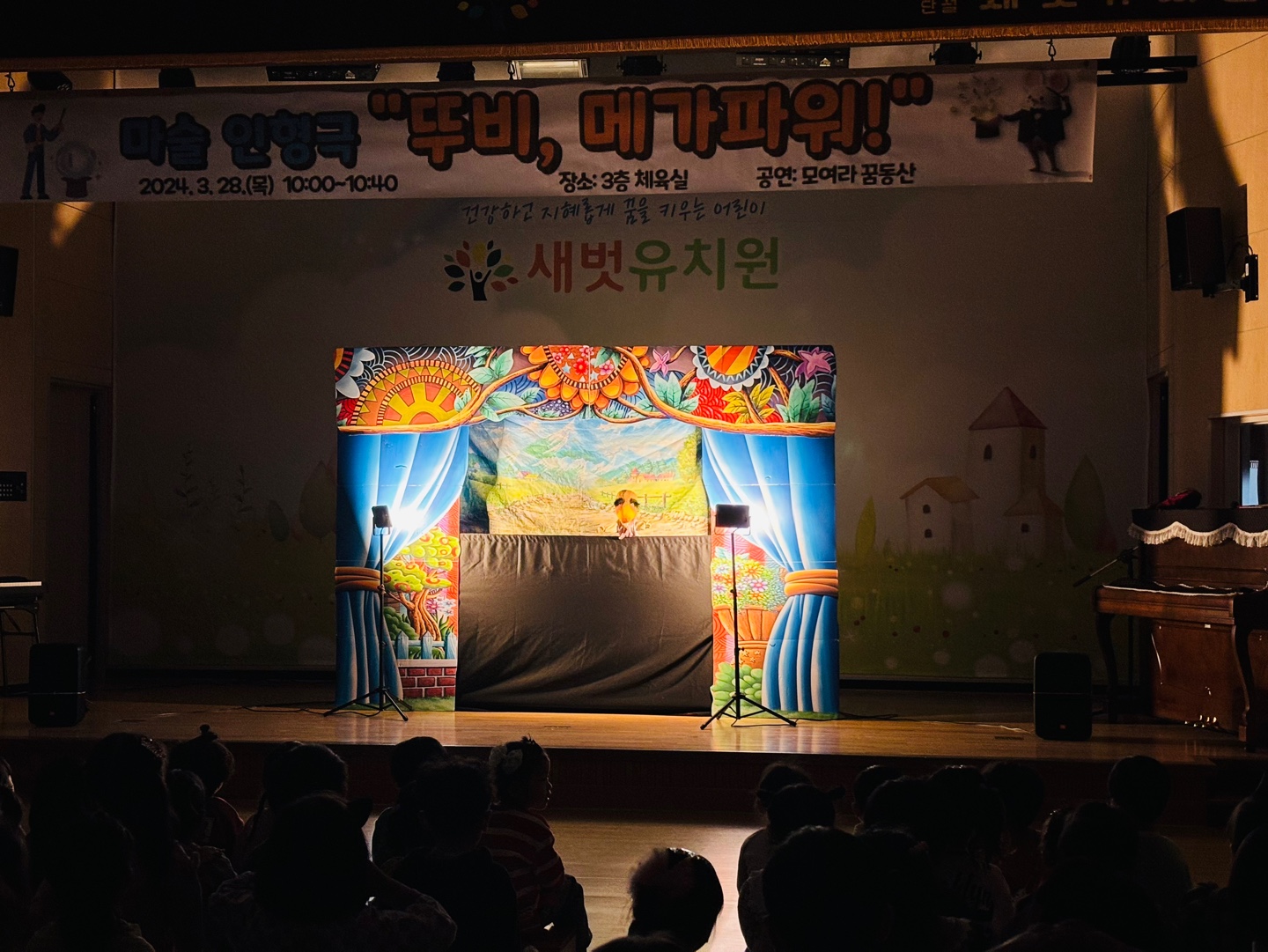 □ 예천군 공립 단설 새벗유치원(원장 우수경)은 3월 28일(목) 3층 체육실에서 유아 122명을 대상으로 마술 인형극 ‘뚜비 메가파워’ 공연을 관람했다.