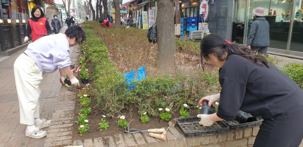 주민자치위원회 위원들은 이날 송내동 핫플레이스인 대풍당 골목 화단에 식재된 철쭉나무 200본과 펜지, 데이지 꽃 등 150주를 심었다.