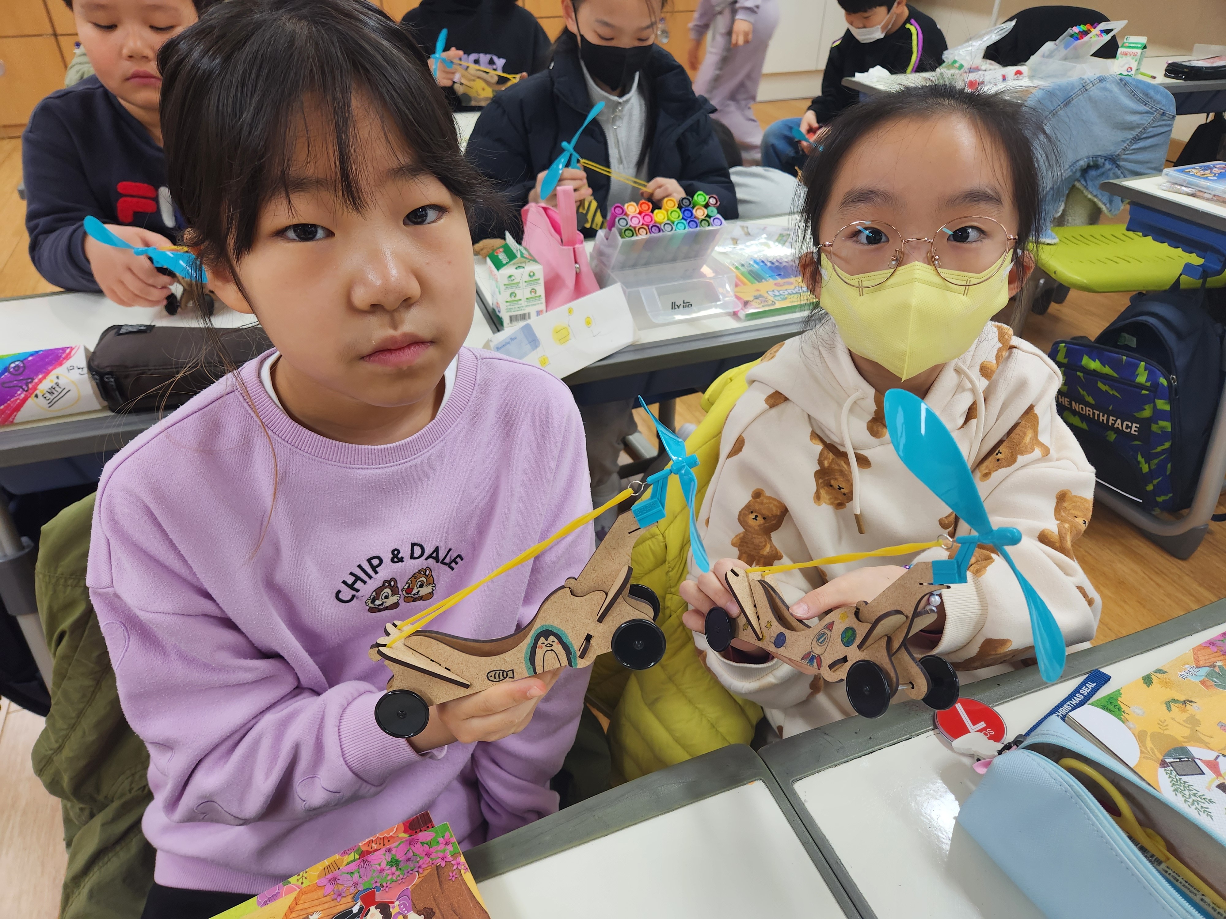 □ 학생들이 직접 선택하고 체험한 행사는 1학년 나만의 팽이 만들기, 2학년 식물 키우기, 3학년 바람을 타고 나는 부메랑 비행기 만들기, 4학년 고무동력 윈드카 만들기, 5학년 광섬유트리 만들기, 6학년 고무동력 윈드카 만들기였다.