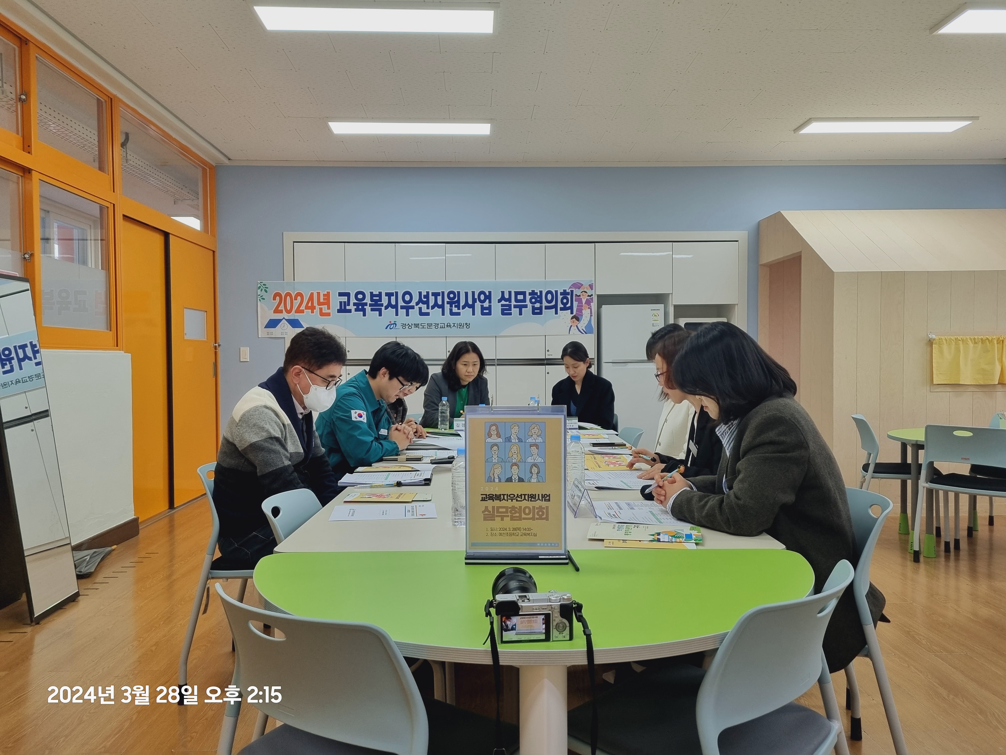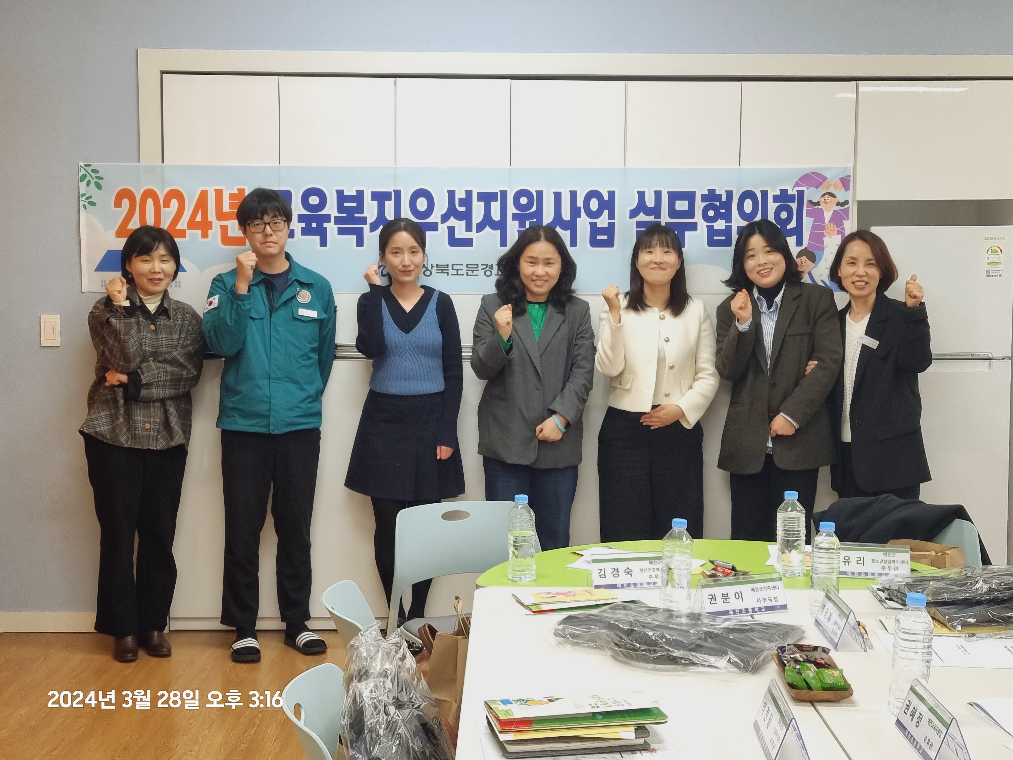 □ 경상북도문경교육지원청(교육장 이경옥)은 2024. 3. 28.(목) 오후 2시, 예천초등학교 교육복지실에서『모두의 가능성을 열고 함께 가는 예천지역 교육복지우선지원사업 실무협의회』를 개최했다.
