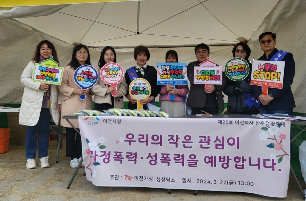 이천가정·성상담소가 주관한 이번 캠페인은 ‘우리의 작은 관심이 가정폭력·성폭력을 예방한다’라는 주제로 민·관 합동캠페인으로 진행됐으며 가정폭력·성폭력이 개인과 가족공동체를 파괴하는 사회적 문제임을 알리고 디지털 성범죄, 스토킹 등 다변화되는 폭력의 위험성을 홍보했다.