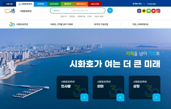 시는 지난 3월 27일부터 시 대표 누리집 내에 시화호 30주년 특화 페이지를 시민에게 선보이고 있다.