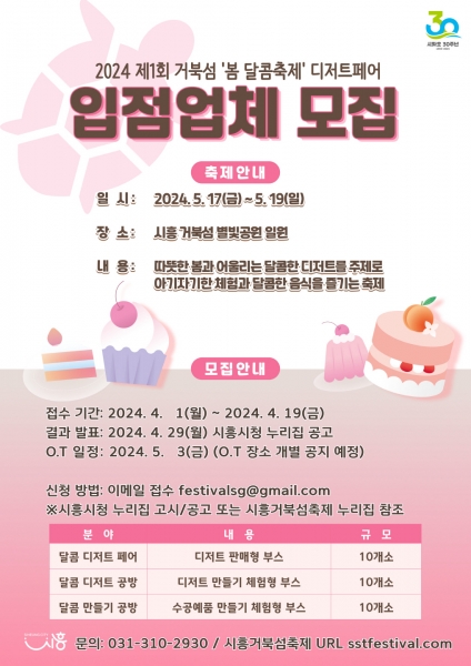 [금요저널] 시흥시는 거북섬에서 열리는 ‘봄 달콤축제’를 개최하기에 앞서 디저트 페어에 참가할 업체를 모집하고 있다.