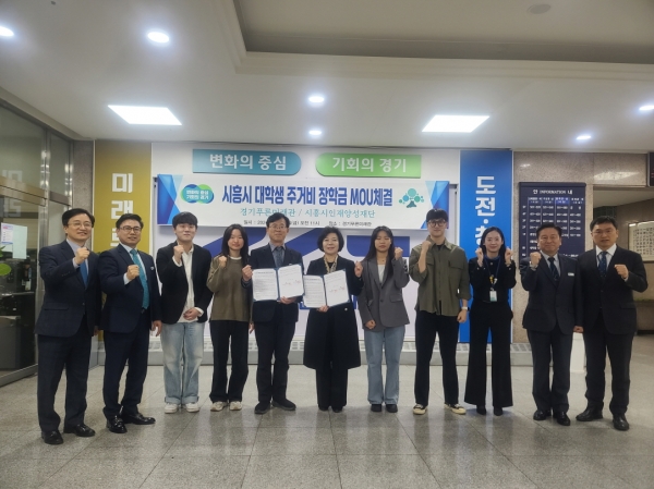 이번 협약은 재단과 경기푸른미래관이 ‘대학생 주거비 지원’을 통해 시흥시 대학생의 주거 안정과 주거비 부담 완화를 위한 협력사업을 추진하고자 마련됐다.