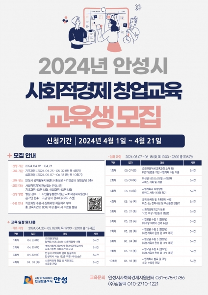안성시, 2024년 사회적경제 창업교육 기초과정 교육생 모집