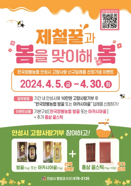 안성시, ‘기부하고 제철꿀과 봄을 맞이해봄’ 이벤트 추진