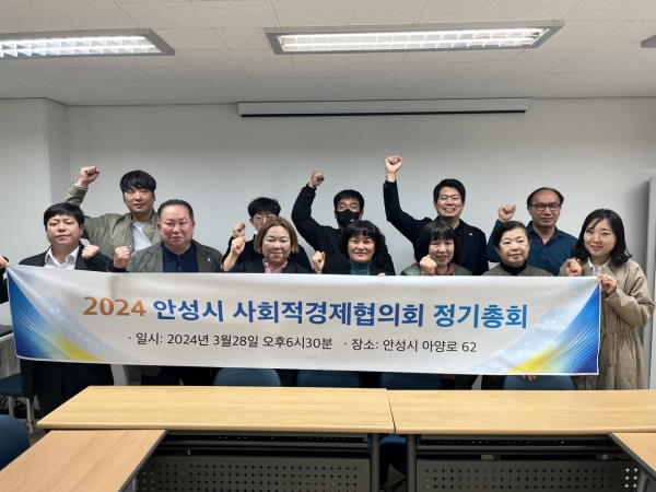 [금요저널] 지난 3월 28일 안성시 관내 취약계층 일자리 및 교육, 복지, 의료 등 사회서비스를 제공하는 등 지역의 다양한 문제를 해결하고 있는 사회적기업, 협동조합, 마을기업, 소비자생활협동조합, 자활기업 주체들이 모여 “2024년 안성시 사회적경제 협의회 정기총회”를 개최했다.