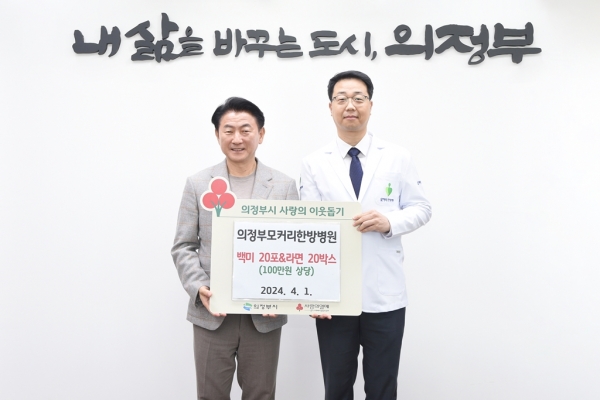 [금요저널] 의정부시는 4월 1일 의정부모커리한방병원이 저소득층을 위해 백미 200kg와 라면 20상자를 전달했다고 밝혔다.
