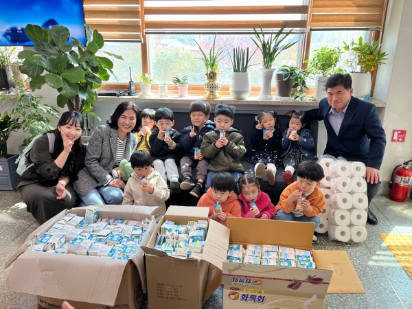 [금요저널] “안녕하세요 아이랜드 어린이집에서 왔다”4월 1일 이천시 모가면 소재 아이랜드어린이집은 모가면행정복지센터를 방문해 우유팩을 화장지로 교환하는 ‘자원순환 교환사업’에 참여했다.