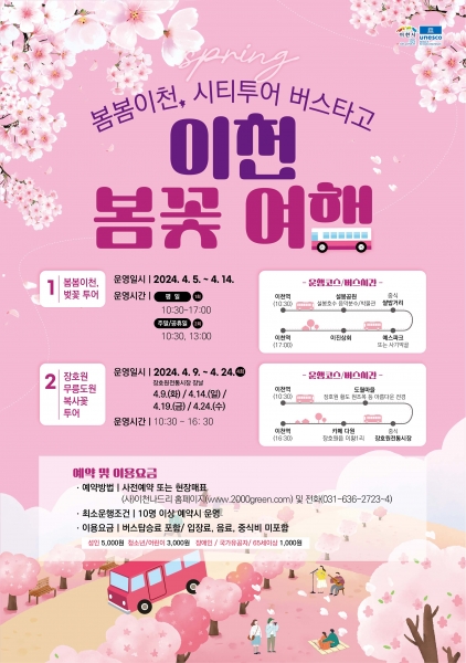 봄봄이천, 봄꽃 시티투어는 이천나드리 홈페이지에서 사전예약을 하고 참여할 수 있으며 여유좌석이 있는 경우 현장탑승도 가능하다.