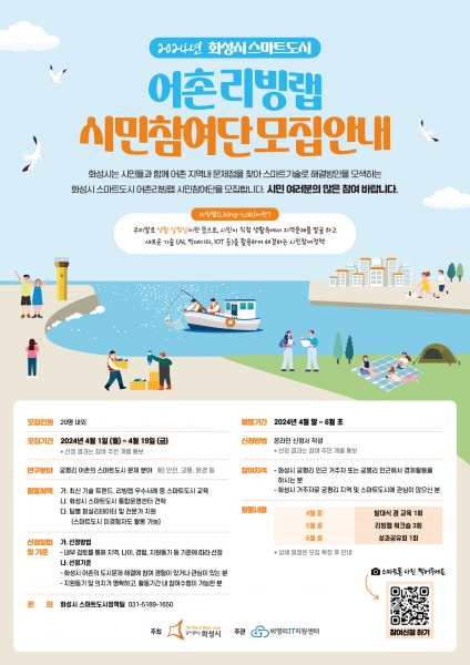 [금요저널] 화성시가 오는 19일까지 시민중심의 스마트도시 구현을 위한 ‘스마트도시 어촌리빙랩 시민참여단’을 모집한다.