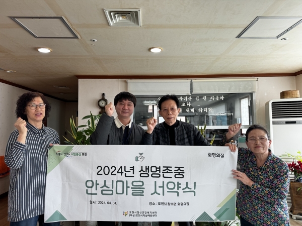 [금요저널] 포천시자살예방센터는 지난 4일 포천시 창수면 소재 사회복지시설 화평의집과 함께 2024년 생명존중안심마을 조성을 위한 서약식을 진행했다.