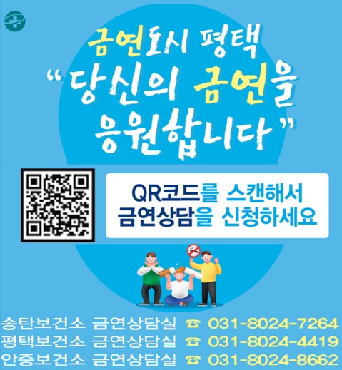 평택시 보건소는 흡연자의 간접흡연 피해에 대한 인식개선을 유도하고 금연 실천을 할 수 있도록 ‘당신의 금연을 응원한다’ 금연클리닉 QR코드 안내를 누리집과 버스정류장에 설치된 버스정보시스템을 통해 홍보하고 있다.