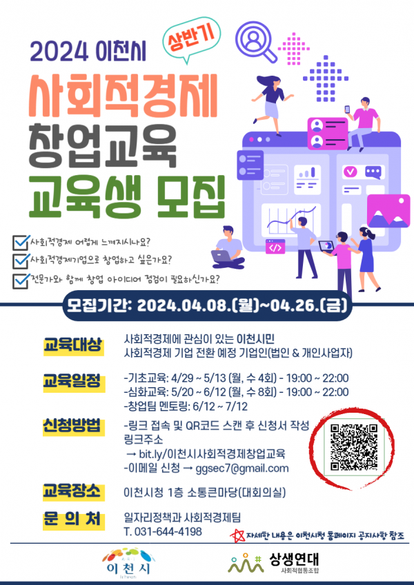 [금요저널] 이천시가 사회적 경제조직에 관심있는 예비창업자들을 위해 “2024 사회적 경제 창업교육” 을 운영한다.